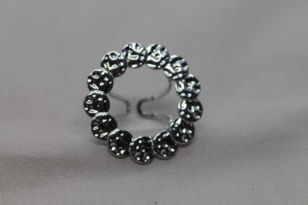 grand anneau martelé sur le devant du doigt