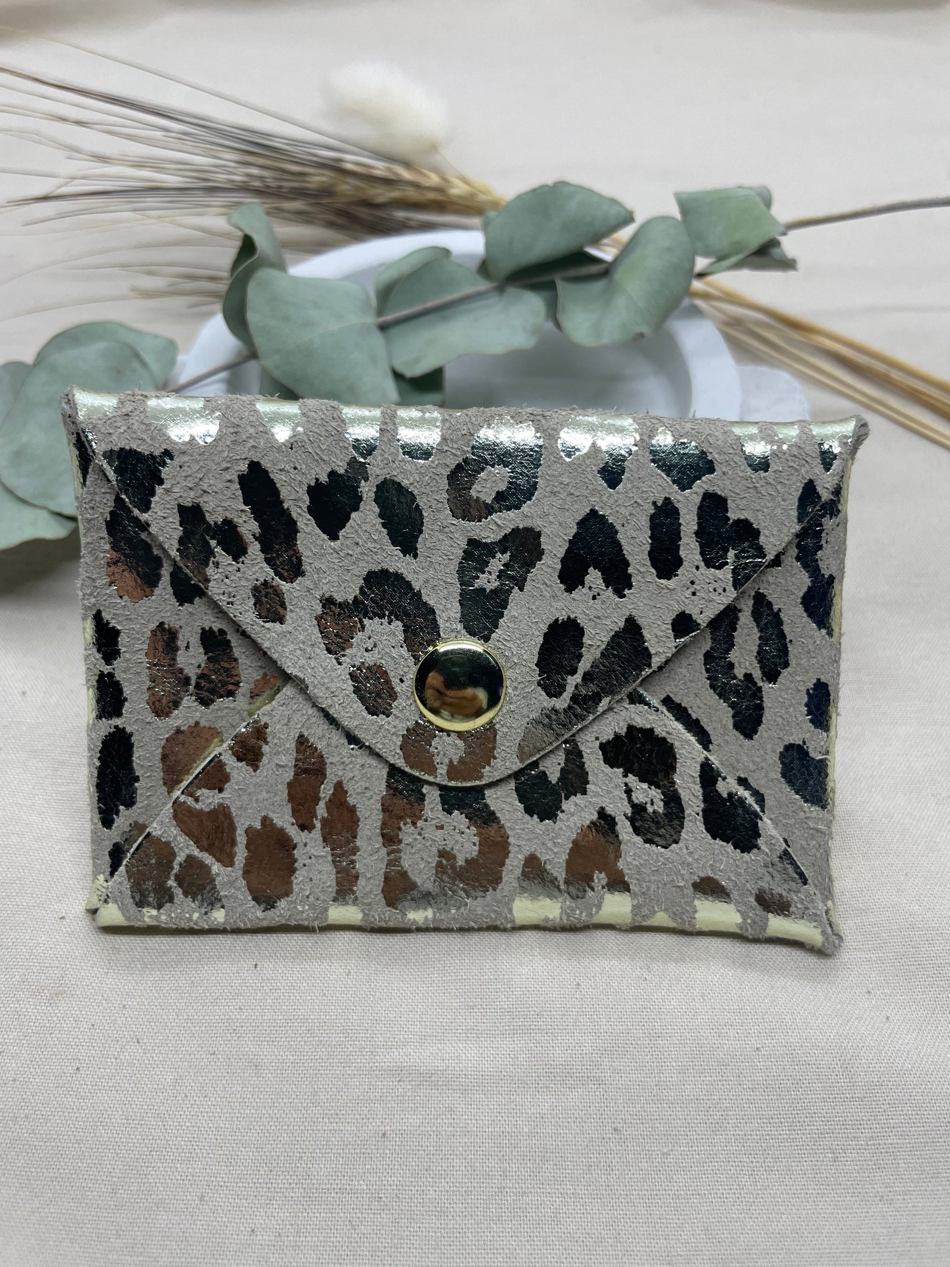 Porte-cartes beige léopard