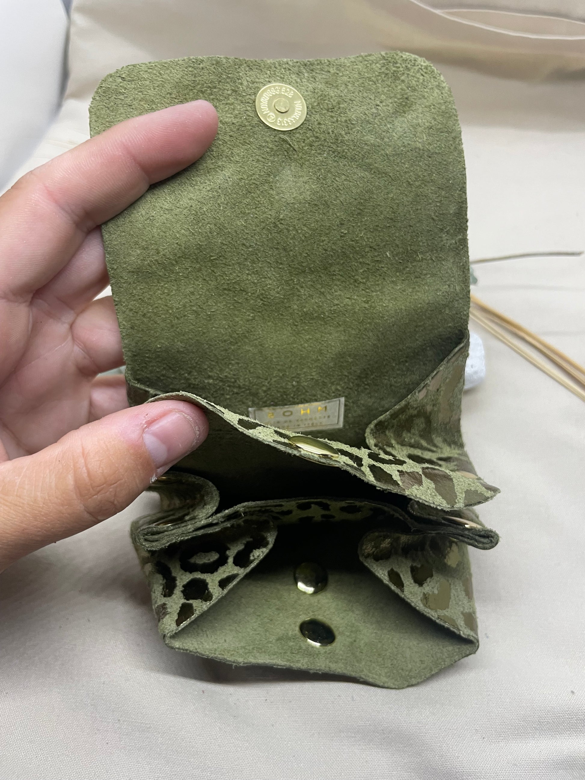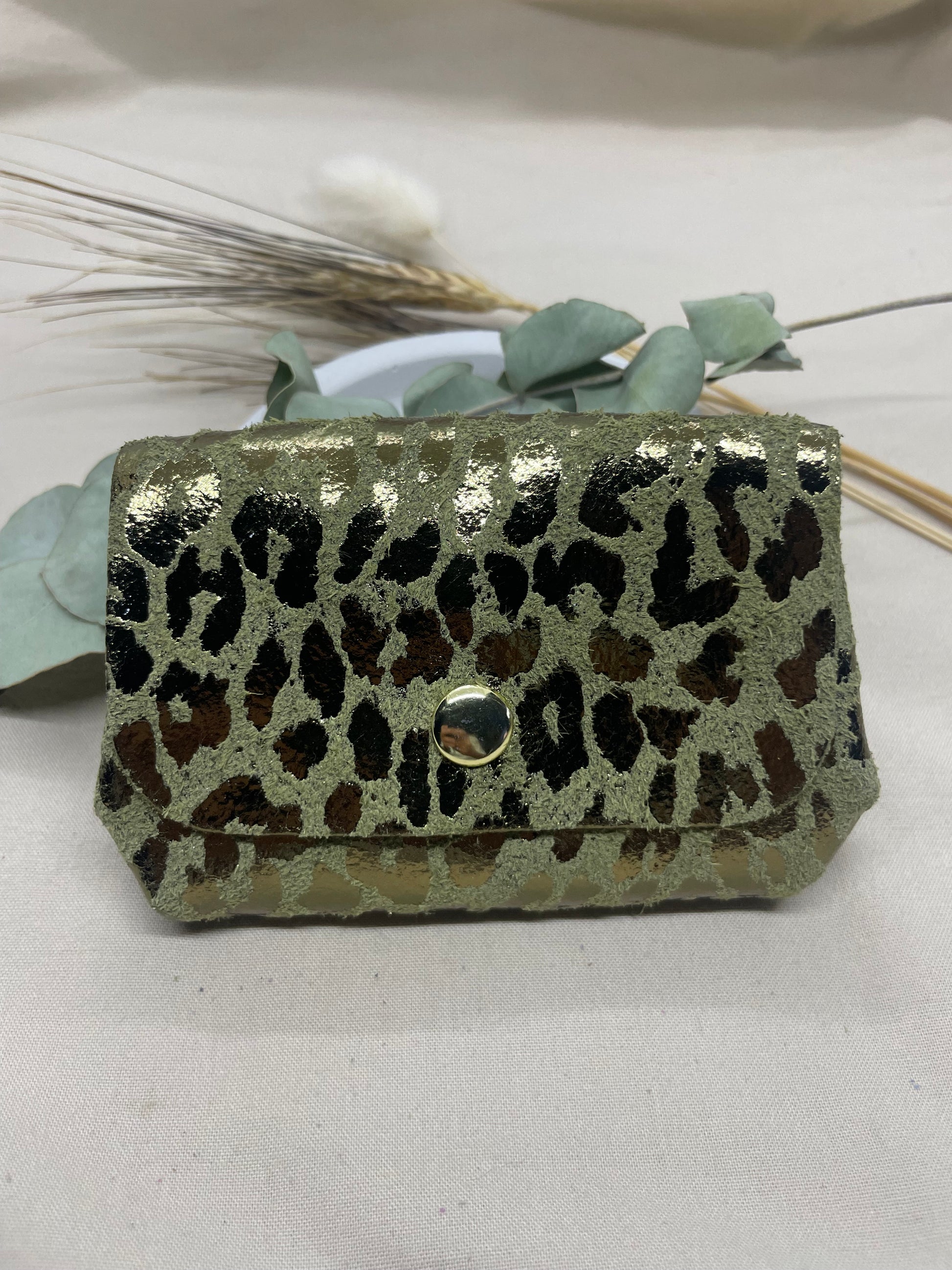 Porte-monnaie kaki léopard double pressions