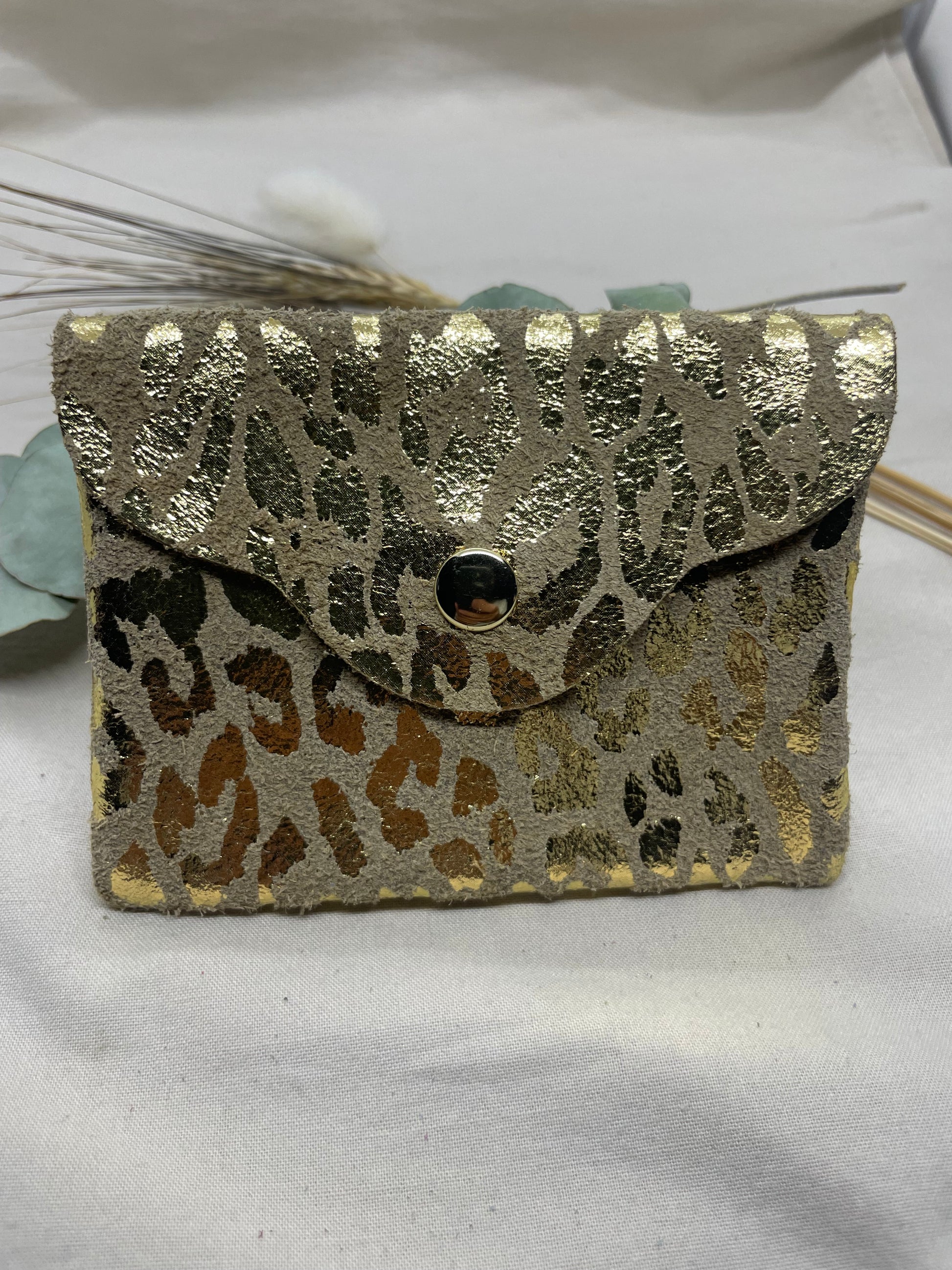 Porte-monnaie plat doré léopard